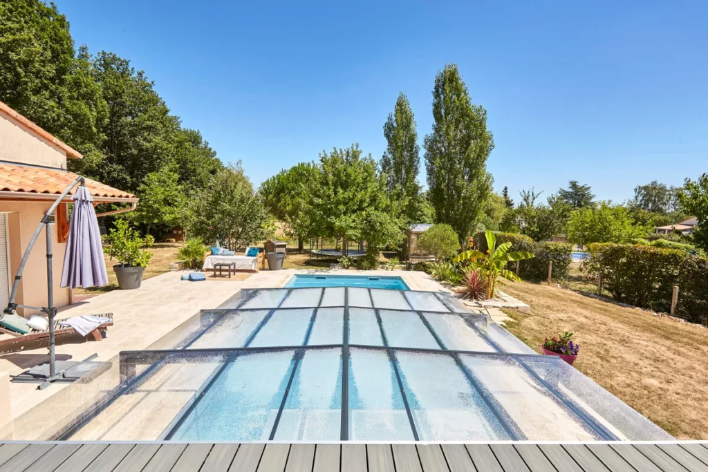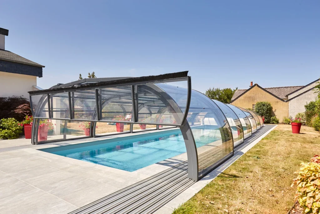 Grâce à son effet de serre naturel, un abri de piscine semi-plat contribue à augmenter la température de l’eau et à prolonger les baignades de plusieurs mois dans l’année. Il constitue également une solution rassurante pour sécuriser l’accès au bassin, notamment pour les foyers avec enfants.