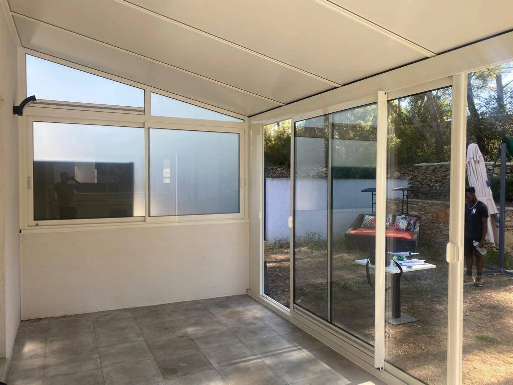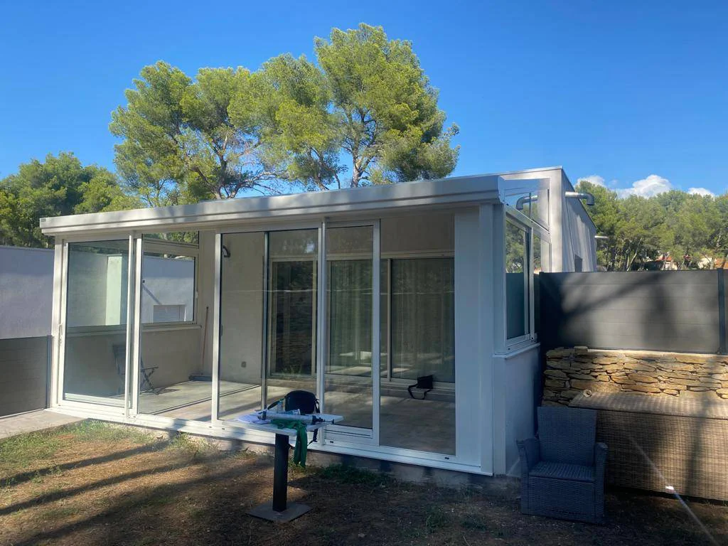 Archi véranda, concessionnaire Gustave Rideau, vous présente cette véranda blanche en aluminium de 18m² à Auriol près de Marseille dans les Bouches du Rhône.