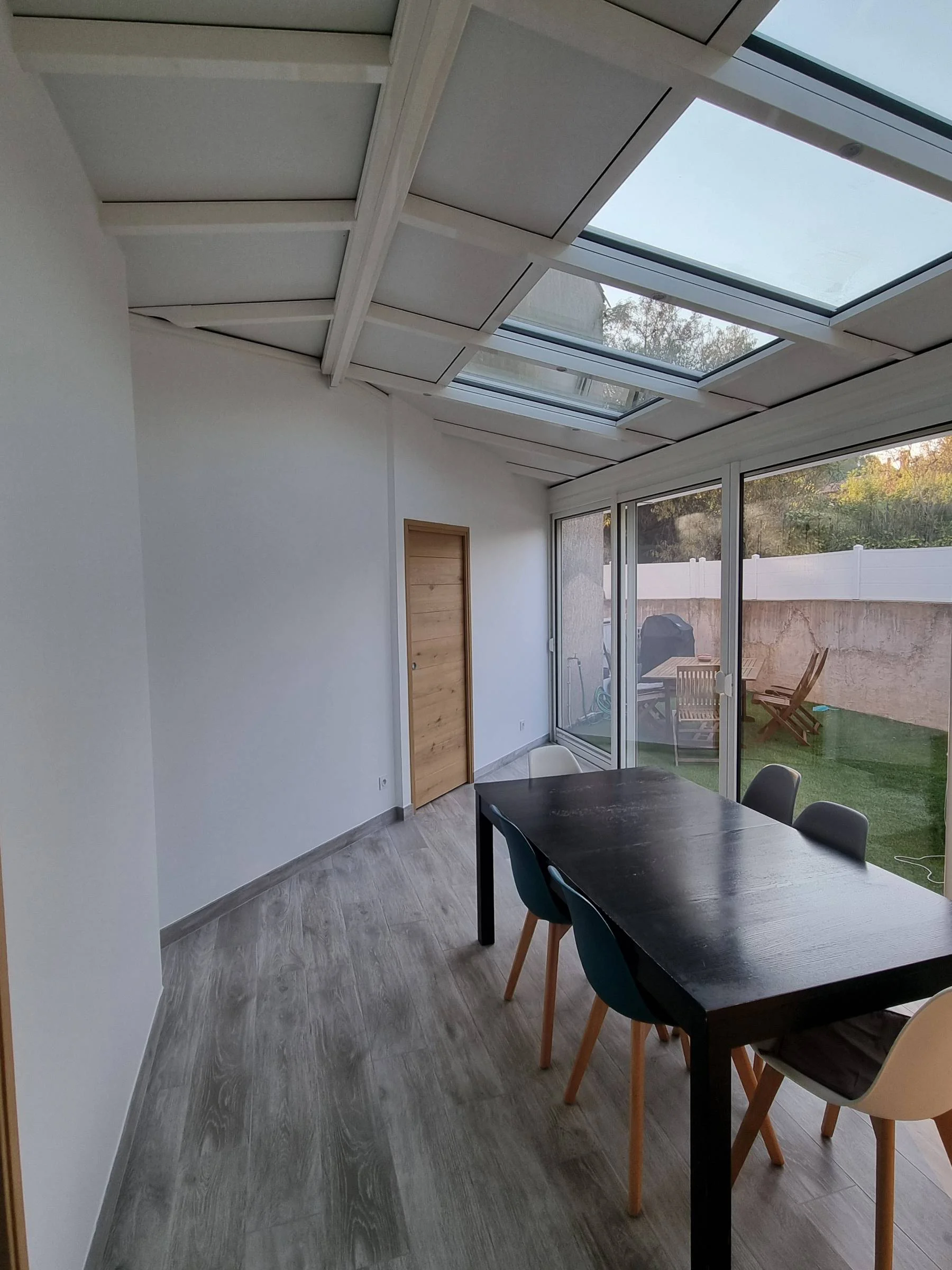 Découvrez la véranda blanche à 2 pentes à Sollies Pont, parfaite pour une intégration harmonieuse dans votre espace de vie. Dotée de 8 spots lumineux, 2 zones d’éclairage distinctes et des finitions soignées comme les capots eau pluviale et les bavettes arrondies, elle allie fonctionnalité et élégance pour un confort optimal.