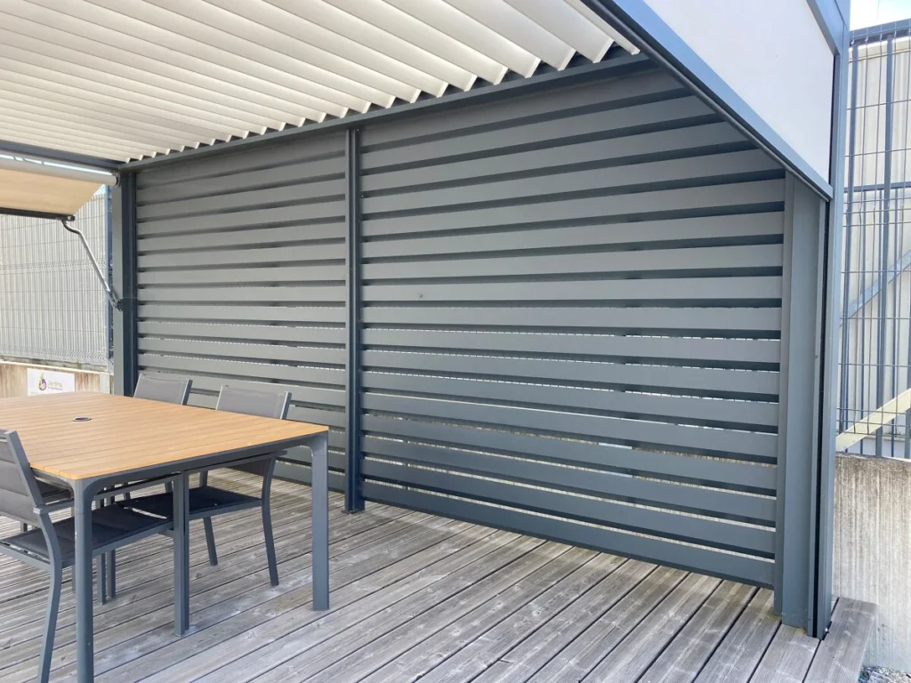 Le rideau de verre est une solution innovante pour votre pergola combinant transparence et isolation. Ce vitrage haut de gamme offre une visibilité maximale tout en protégeant votre espace des variations climatiques. Grâce à ses propriétés isolantes, il contribue à maintenir une température agréable à l’intérieur, tout en laissant passer la lumière naturelle.