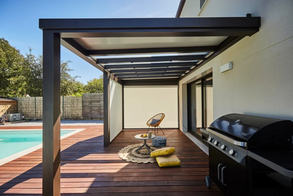 Côté structure, la pergola en aluminium reste le meilleur compromis entre esthétique, durabilité et simplicité d’usage.