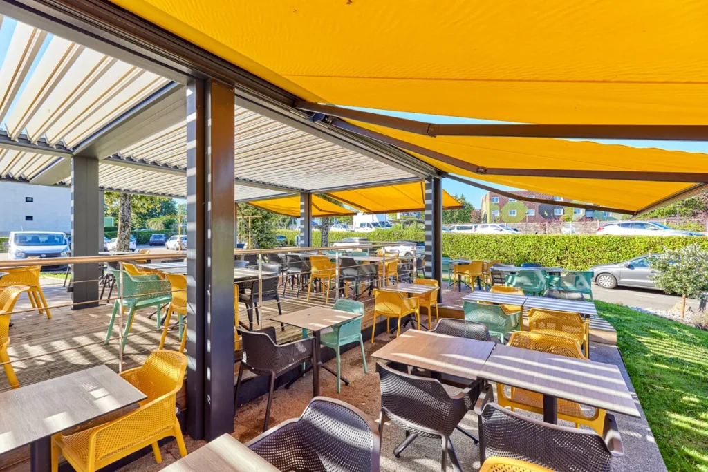 Nous accompagnons une large variété de professionnels : cafés, hôtels, restaurants, commerces, concessionnaires automobiles, établissements de loisirs, bureaux ou encore collectivités locales. Nos solutions sont adaptées à tous les secteurs ayant besoin de valoriser ou d’optimiser leurs espaces extérieurs.